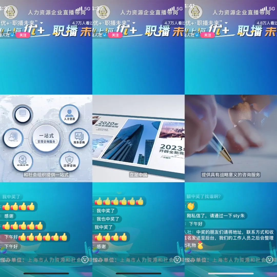 4月24日下午,國企商務&中企人力作為優(yōu)秀人力資源服務代表企業(yè)之一,受邀參加由上海市人力資源和社會保障局主辦的“樂業(yè)優(yōu)+·職播未來”——2025年人力資源企業(yè)直播帶崗系列活動。此次直播通過“上海人社”官方抖音號、微信視頻號及嗶哩嗶哩平臺同步播出,線上觀看量突破萬人次,熱度持續(xù)攀升!