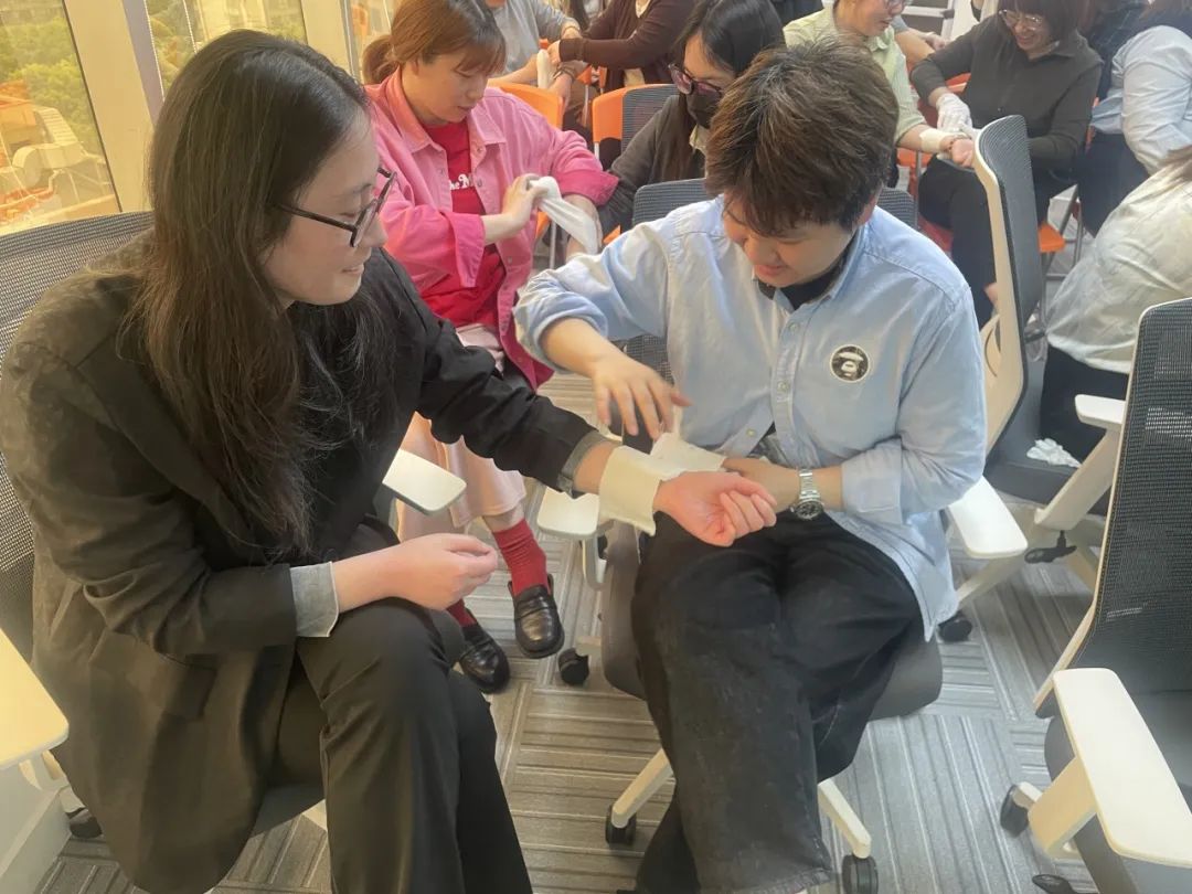 課堂采用 “30% 理論精講 + 70% 實(shí)操演練” 模式,通過模擬真實(shí)急救場景,員工們在導(dǎo)師的指導(dǎo)下,分組進(jìn)行心肺復(fù)蘇(CPR)、止血包扎、骨折固定等核心技能實(shí)操訓(xùn)練,確保每位參與者都能熟練掌握急救操作要點(diǎn)。