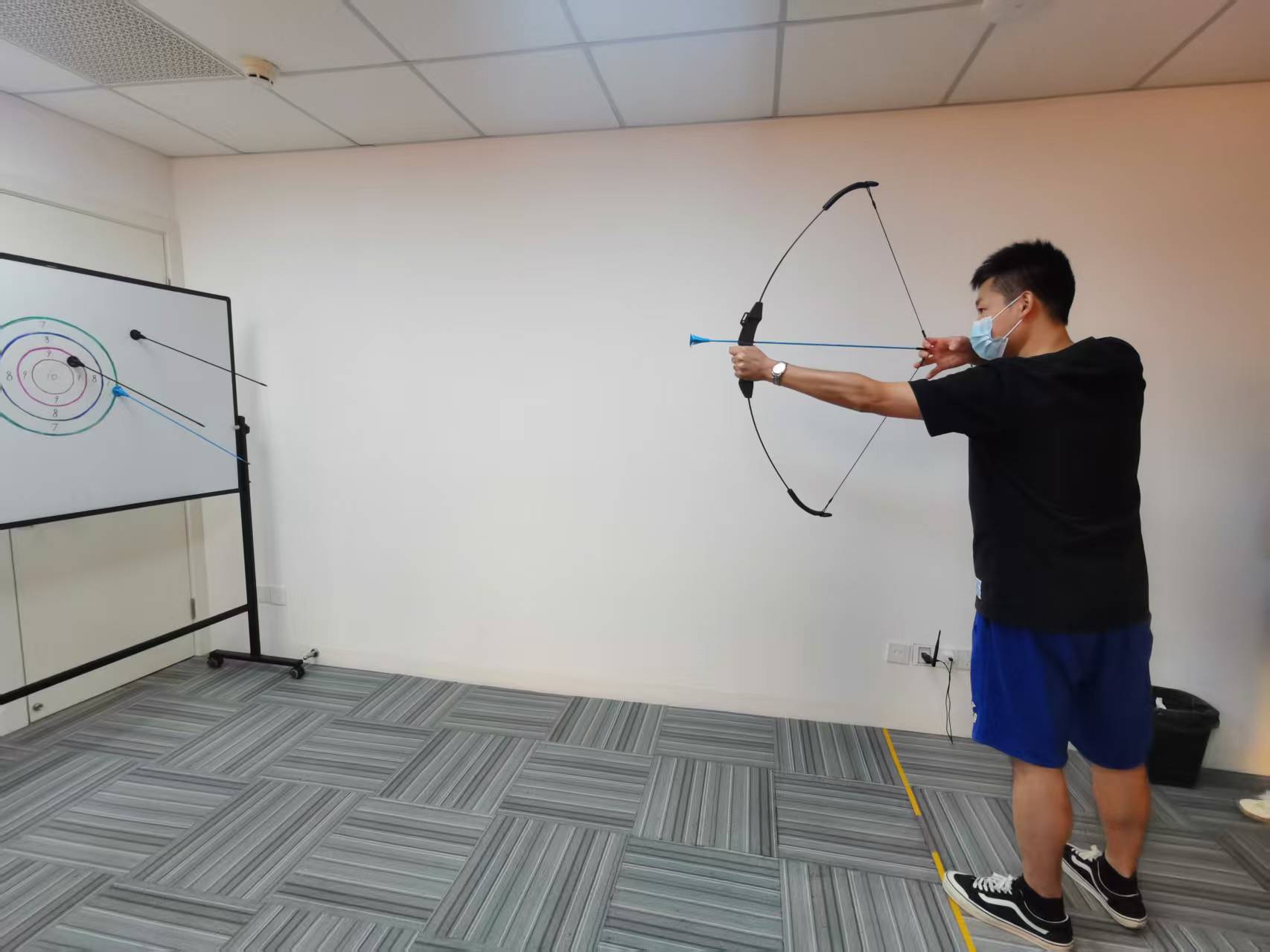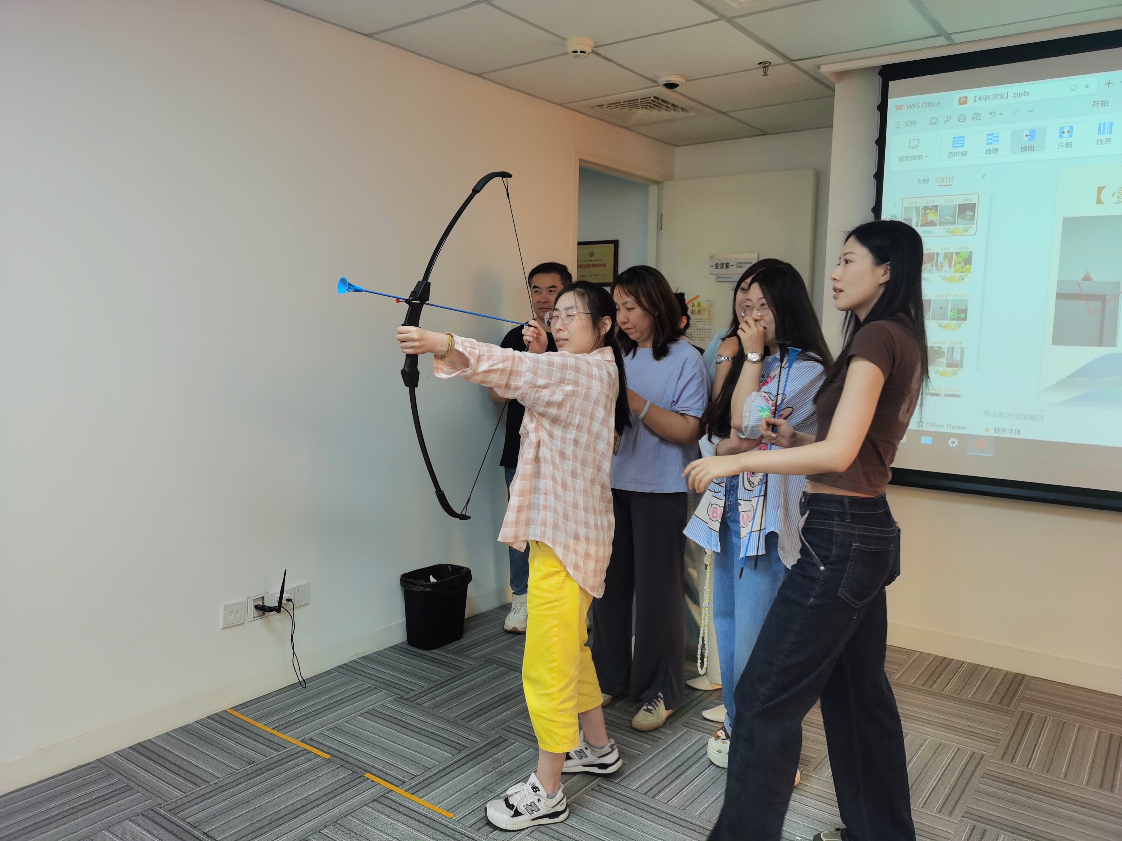 大會(huì)議室內(nèi),“玉兔射月”射箭游戲區(qū)則傳來陣陣喝彩,選手們屏息凝神,瞄準(zhǔn)“月亮”靶心,弓弦輕響間盡顯颯爽英姿。
