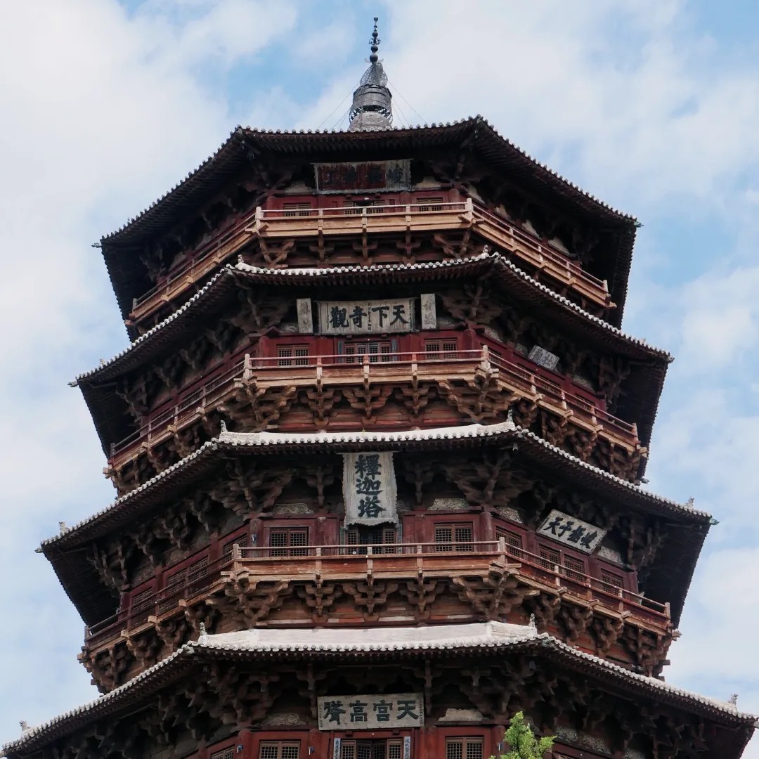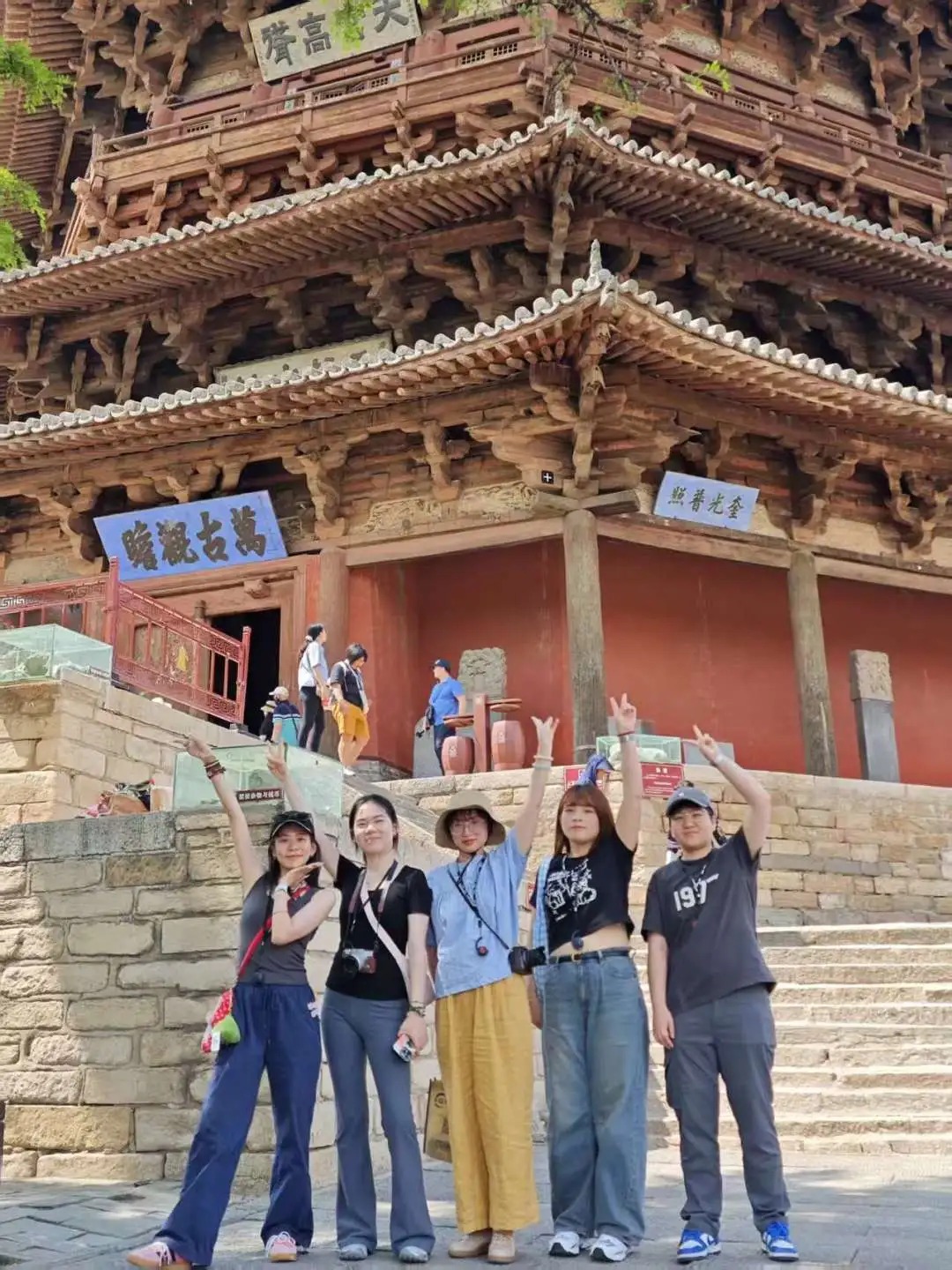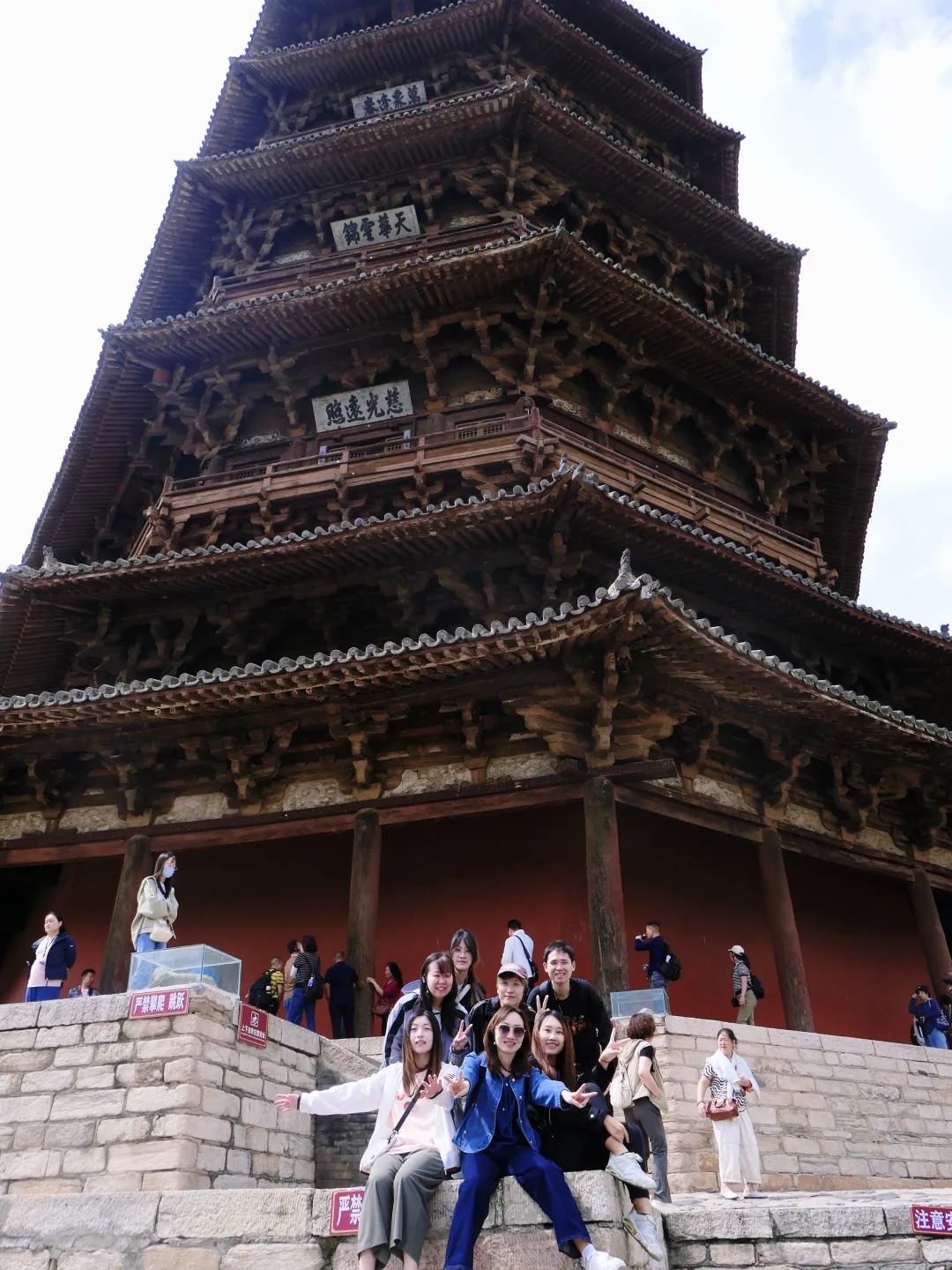 第三天,我們向著大同出發(fā),首站便是應(yīng)縣木塔。這座中國現(xiàn)存最高、最古老的木結(jié)構(gòu)塔,不用一釘一鉚卻屹立千年,堪稱 “建筑史上的活化石”。大家紛紛在塔下拍照,并贊嘆古人的力學(xué)智慧。