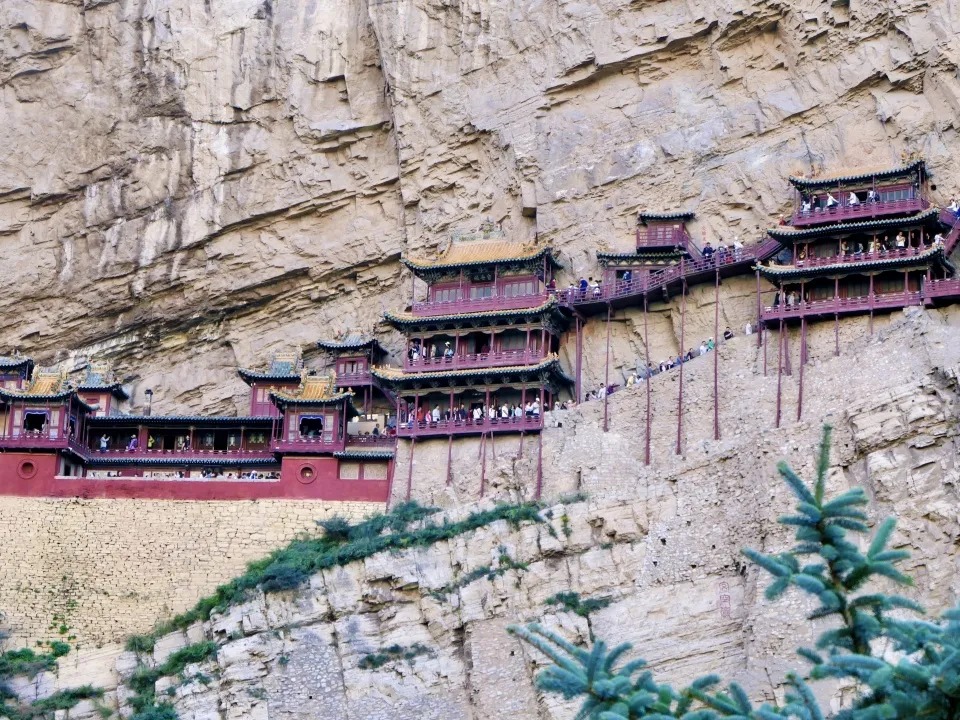 隨后,我們來到懸空寺。這座掛在懸崖峭壁上的奇寺,集佛、道、儒三教于一體,以 “奇、險(xiǎn)、巧” 聞名于世。不少人前往登臨,行走在僅容一人通過的棧道上,腳下是萬丈深淵,身旁是千年古剎,驚險(xiǎn)與敬畏交織,讓人深刻體會(huì)到“奇險(xiǎn)”二字的真諦。