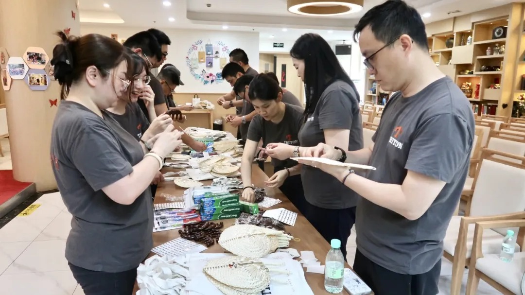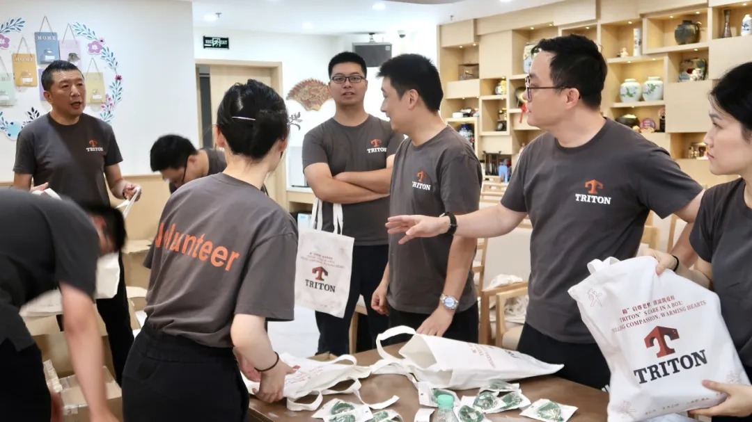 貼標組志愿者將印有TRITON logo的貼紙細心粘貼在清涼物品顯眼位置,彰顯企業(yè)對活動的重視;分裝組則按預設(shè)組合,將物品整齊裝入定制帆布袋,每一份禮包都承載著對老人的誠摯關(guān)懷。