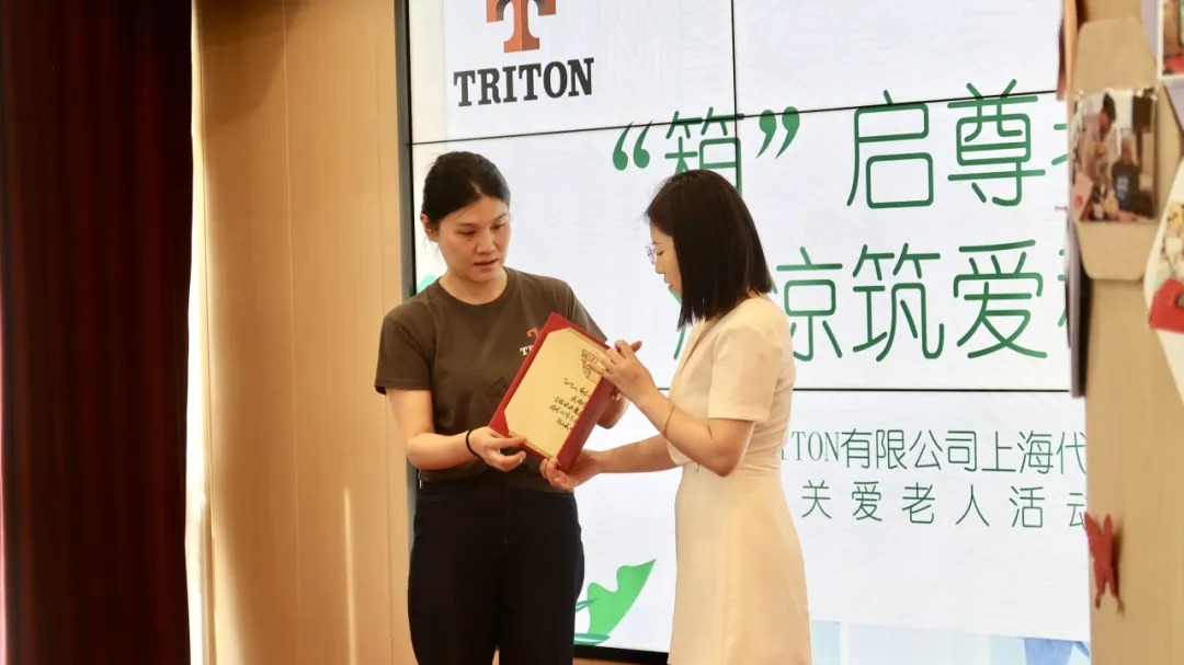 活動伊始,上海黃浦區(qū)全程玖玖馨逸養(yǎng)護院綜管部主任首先致辭,向到場的企業(yè)代表與志愿者表達歡迎與感謝,隨后向TRITON企業(yè)代表頒發(fā)捐贈證書,以表彰其為老人們捐贈清涼禮包的善舉。
