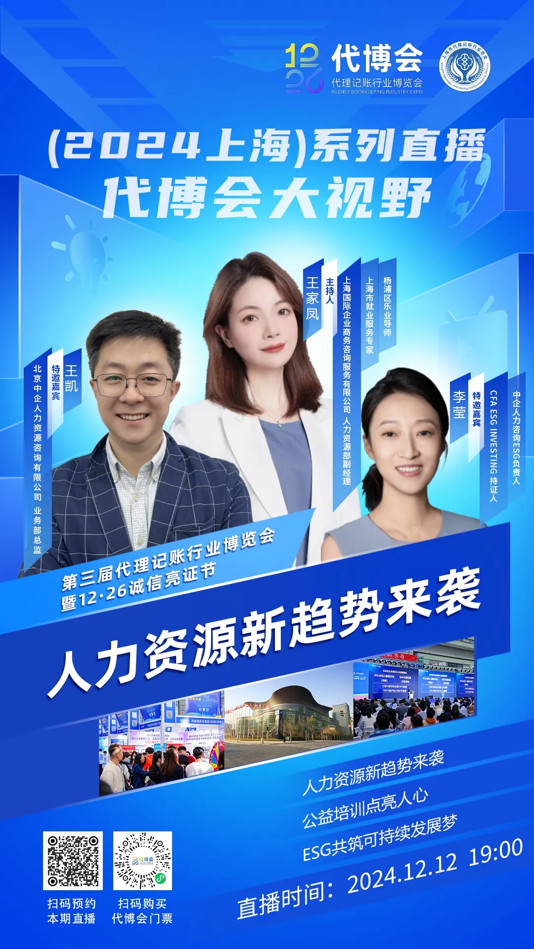 隨著“第三屆代理記賬行業(yè)博覽會(huì)暨12·26誠信亮證節(jié)”的日益臨近,一場(chǎng)聚焦人力資源新趨勢(shì)與可持續(xù)發(fā)展愿景的直播盛宴,在上海國際企業(yè)商務(wù)咨詢服務(wù)有限公司(以下簡(jiǎn)稱“國企商務(wù)”)人力資源部副經(jīng)理王家鳳的精心主持下,于線上熱烈展開。直播中,北京中企人力業(yè)務(wù)部總監(jiān)王凱與ESG領(lǐng)域的資深專家李瑩,與一千多名熱情洋溢的線上觀眾,共同探討了代理記賬行業(yè)的人才趨勢(shì)、社會(huì)公益實(shí)踐以及ESG在財(cái)務(wù)服務(wù)中的潛力。