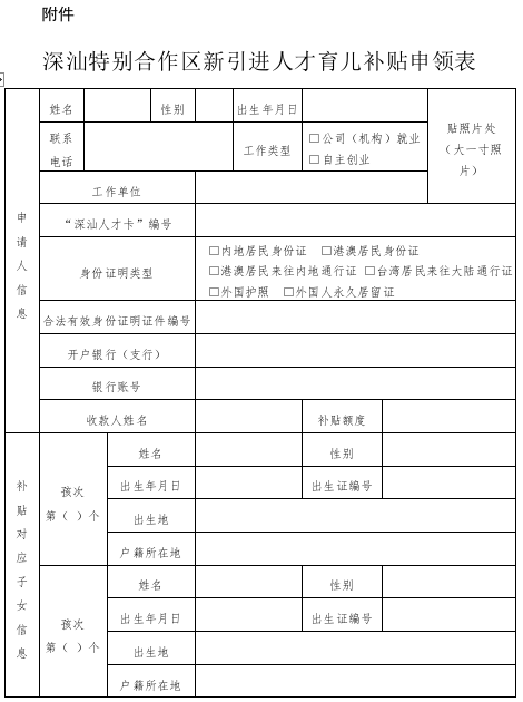 申領(lǐng)條件:申請(qǐng)人引進(jìn)后在深汕的醫(yī)療機(jī)構(gòu)生育子女,且該子女需為深汕戶籍。