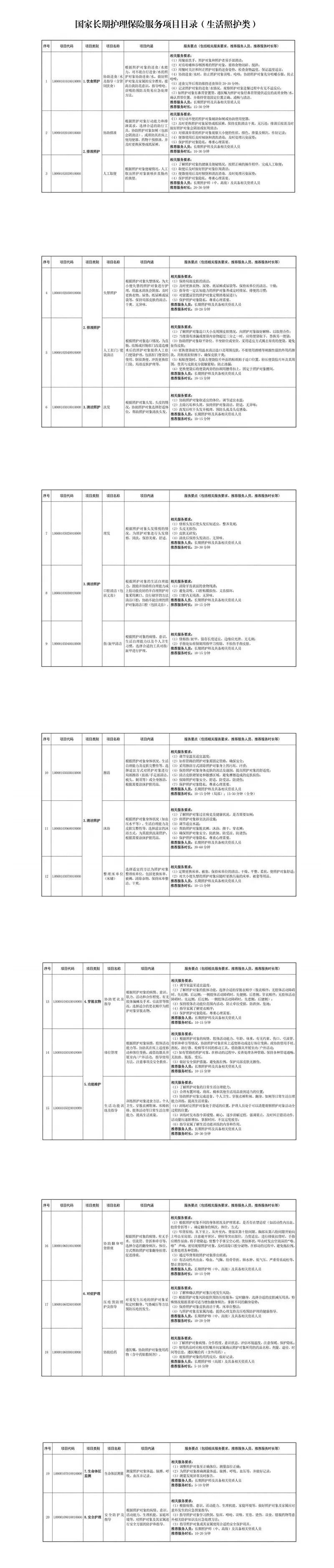 · 《國(guó)家長(zhǎng)期護(hù)理保險(xiǎn)服務(wù)項(xiàng)目目錄(試行)》,對(duì)服務(wù)項(xiàng)目?jī)?nèi)涵、基金支付范圍等進(jìn)行統(tǒng)一,明確納入目錄的服務(wù)費(fèi)用,按照規(guī)定由長(zhǎng)期護(hù)理保險(xiǎn)基金支付。