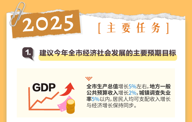 龔正說,綜合各方面因素,建議今年全市經(jīng)濟社會發(fā)展的主要預(yù)期目標是:全市生產(chǎn)總值增長5%左右,地方一般公共預(yù)算收入增長2%,全社會研發(fā)經(jīng)費支出相當于全市生產(chǎn)總值的比例達到4.5%左右,城鎮(zhèn)調(diào)查失業(yè)率5%以內(nèi),居民人均可支配收入增長與經(jīng)濟增長保持同步,居民消費價格漲幅2%左右,單位生產(chǎn)總值能耗、單位生產(chǎn)總值二氧化碳排放量進一步下降,主要污染物重點工程減排量完成國家下達目標。