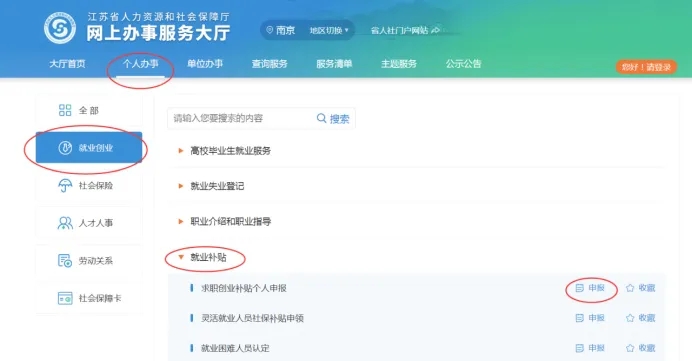 (一)通過“江蘇人社網(wǎng)辦大廳”申報(bào)