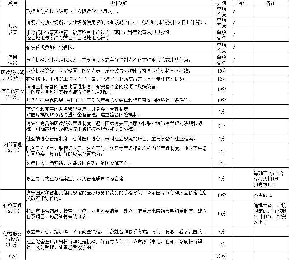 浙江省工傷醫(yī)療機構(gòu)資質(zhì)評估評分表