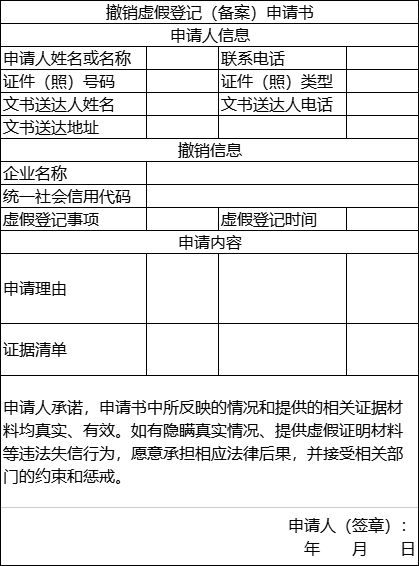 附件:撤銷虛假登記(備案)申請(qǐng)書(shū)