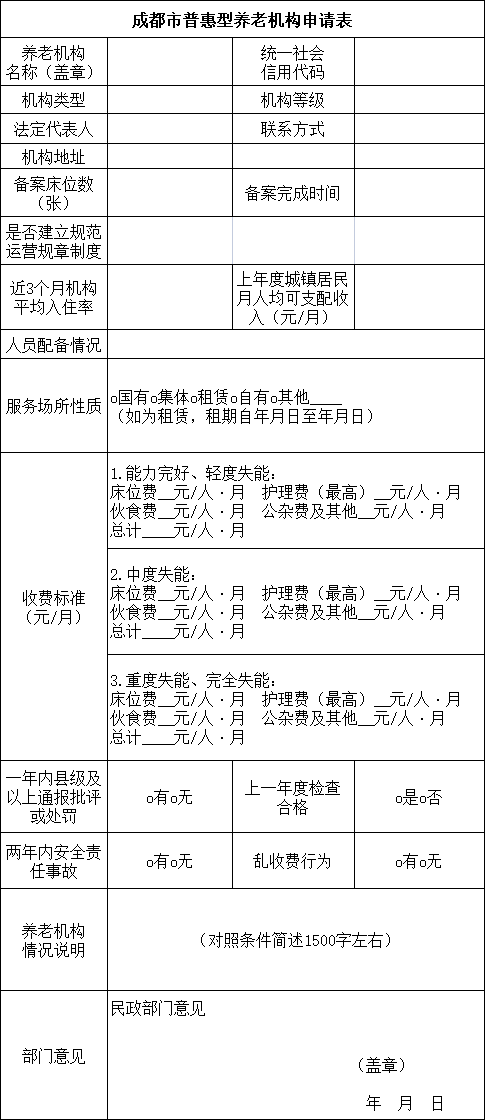 附件:1. 成都市普惠型養(yǎng)老機構申請表